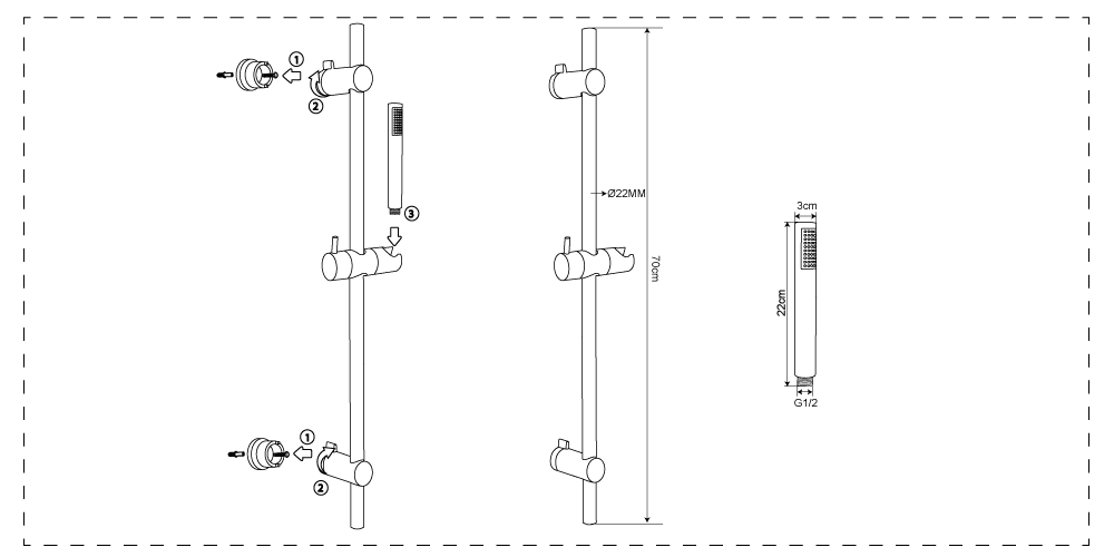 • Système de réglage : Équipé d’un bouton pour un ajustement facile de la hauteur du support de douchette.