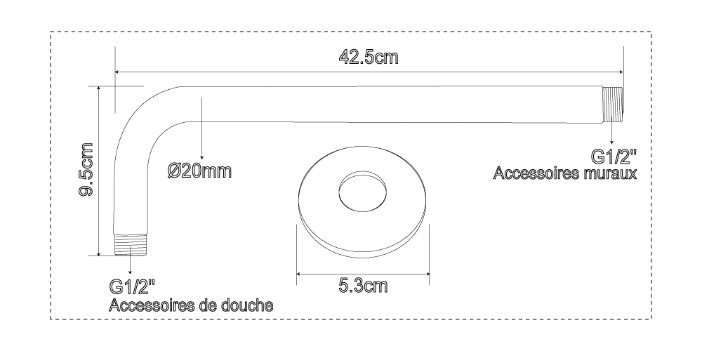 • Composants inclus : Le bras de douche est accompagné d’une rosace (bride) de finition assortie.