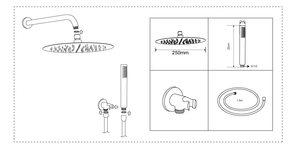 Nom du produit : Ensemble de Douche Rond.